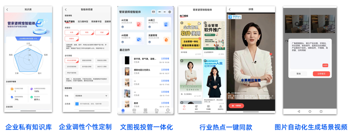 AI工具无需专业文案、美工、摄像、主持、编导等,也无需专业设备,一部手机,运用AI大模型算法,几分钟快速制作专业文案、精美的海报和商品图。一张图片一段文字即可快速生成品宣营销口播短视频,为企业低成本高效率的利用新媒体平台进行获客和引流。